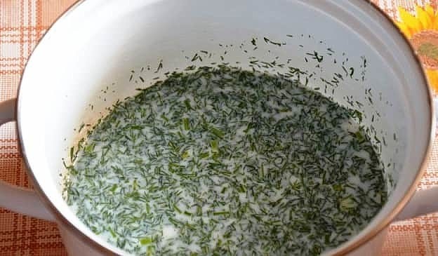 Для эффективного средства от гипертонии нам понадобится свежий укроп. Зелень растения нужно мелко порезать, чтобы получился полный стакан. В кастрюлю налить один литр молока, всыпать в него укроп и поставить на газ. Постоянно помешивая, молоко с травой довести до кипения и проварить на медленном огне 20 минут. Затем остужаем и оставляем настаиваться на 12 часов. Затем молоко перелить в термос и убрать на целые сутки. Полученное количество молока должно быть равным 600 миллилитрам. Это средство необходимо употребить в течение одного дня, просто пить по глоточку. Спустя месяц лечение повторяют, затем еще разок. Основное правило — соблюдение месячного промежутка между курсами лечения. Таким образом, если пили молоко пятого числа, то повтор приема молока начинаем также пятого числа следующего месяца и снова 5 числа еще через месяц. 5 июля-5 июня-5 августа, например. Это простое и доступное средство очень эффективное.